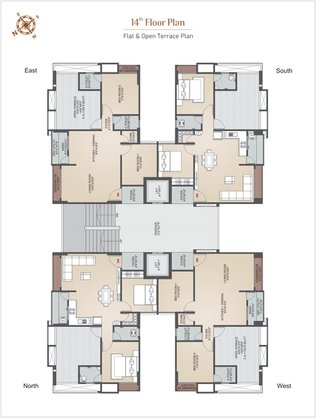 14th Floor (2.98m), + Terrace.The building consists of a Ground Floor (3.1m), 1st–4th Floors (3.0m each), and a Terrace.