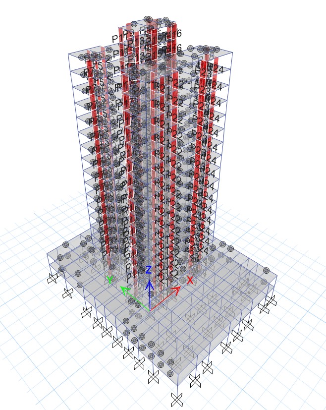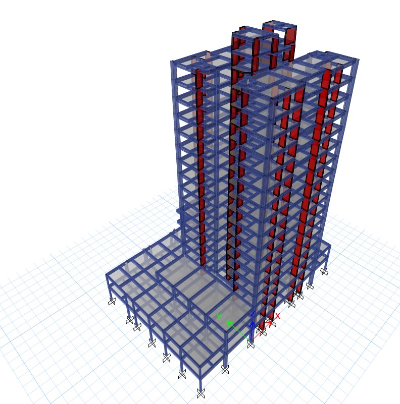 The structural design follows a framed RC system ensuring seismic resistance and efficient load distribution.